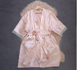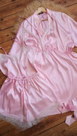 The 4pc Lacy Gown Set offers elegance and allure with its delicate lace gown, matching thong, sultry bra, and chic robe. Perfect for special occasions or self-indulgence, this set combines comfort and sophistication to enhance your intimate wardrobe.